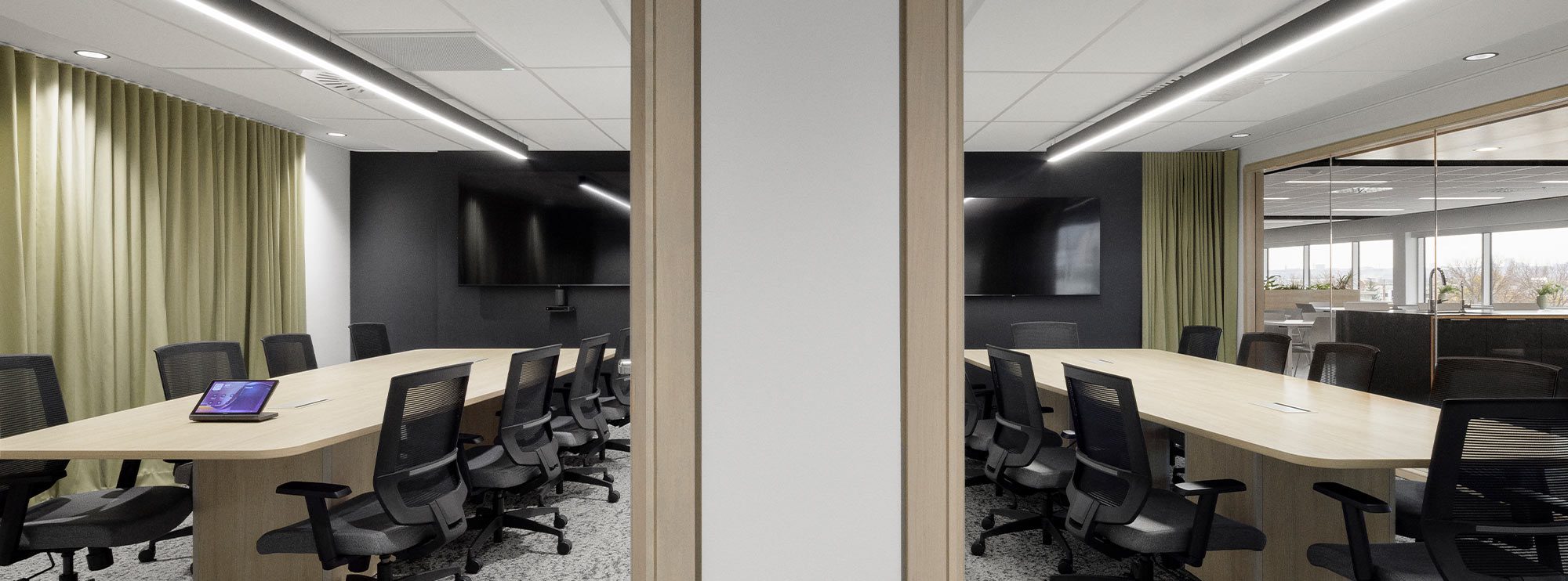 Dans une deuxième phase, nous avons procédé à l’aménagement des nouveaux espaces qui incluent une nouvelle aire ouverte, des nouveaux postes de travail, des nouvelles salles de réunion, une nouvelle cuisine et des nouvelles salles de toilettes.